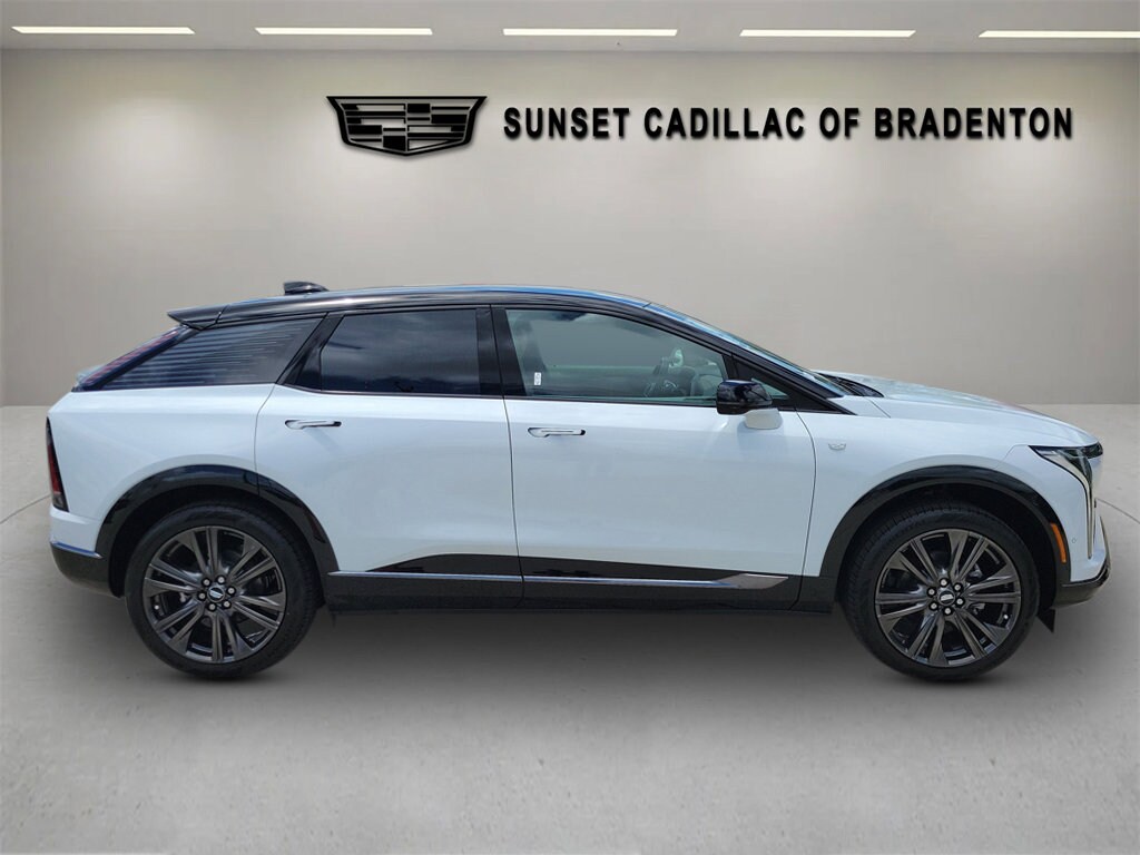 AUTUMN CANYON, INTELUXE SEATS WITH PERFORATED INSERTS AND EMBROIDERED EMBELLISHMENTS SEAT TRIM (With PaperWood decor., 3 YEARS SIRIUSXM, Wireless Phone Charging (The system wirelessly charges one compatible mobile device. Some phones have built-in wireless charging technology and others require a special adaptor/back cover. To check for phone or other device compatibility, see my.cadillac.com/learnAbout/wireless-charging or consult your carrier.), Wipers, front intermittent, Rainsense, Wi-Fi Hotspot capable (Terms and limitations apply. See onstar.com or dealer for details.), Wheels, 20" (50.8 cm) Dark Android painted alloy with aero inserts, Wheel, spare, none, Visors, driver and front passenger illuminated sliding vanity mirrors, Vision Enhanced Automatic Parking Assist, Vehicle-to-home (V2H) all V2H-capable GM EV's can provide power to your properly equipped home in a blackout (The GM Energy PowerShift Charger and GM Energy V2H Enablement Kit requires an adequately charged and properly equipped GM EV having bidirectional charging capabilities, a properly equipped home, and proper grid interconnection. Some eligible 24MY EVs will require a dealership or over-the-air update to enable bidirectional charging. Weather conditions, life of the battery, vehicle variation and usage, and other external factors may impact the duration of power supply. Power supply may be interrupted. It is not recommended that the following devices be powered with the GM Energy PowerShift Charger and V2H Enablement Kit: Medical Devices.), USB ports, type-C, front lower console, dual, charge-only, USB ports, type-C, dual, charge-only, rear console, Universal Home Remote, Transmission, none.